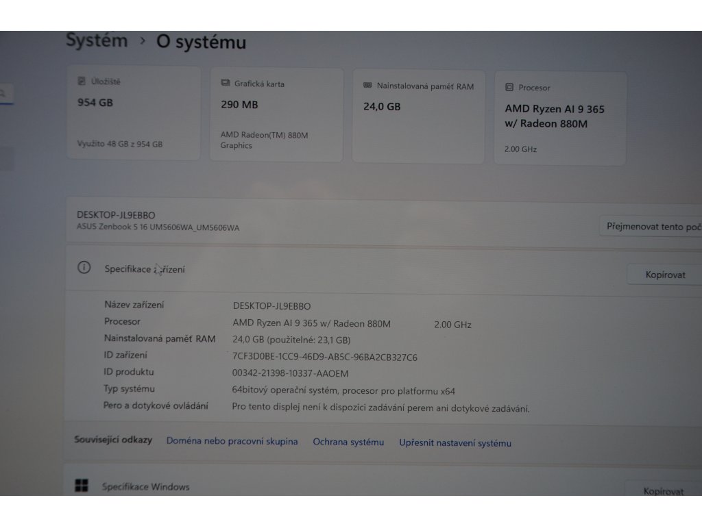 Asus Zenbook S 16 Ryzen9/24GB/SSD 1TB NVMe/Záruka