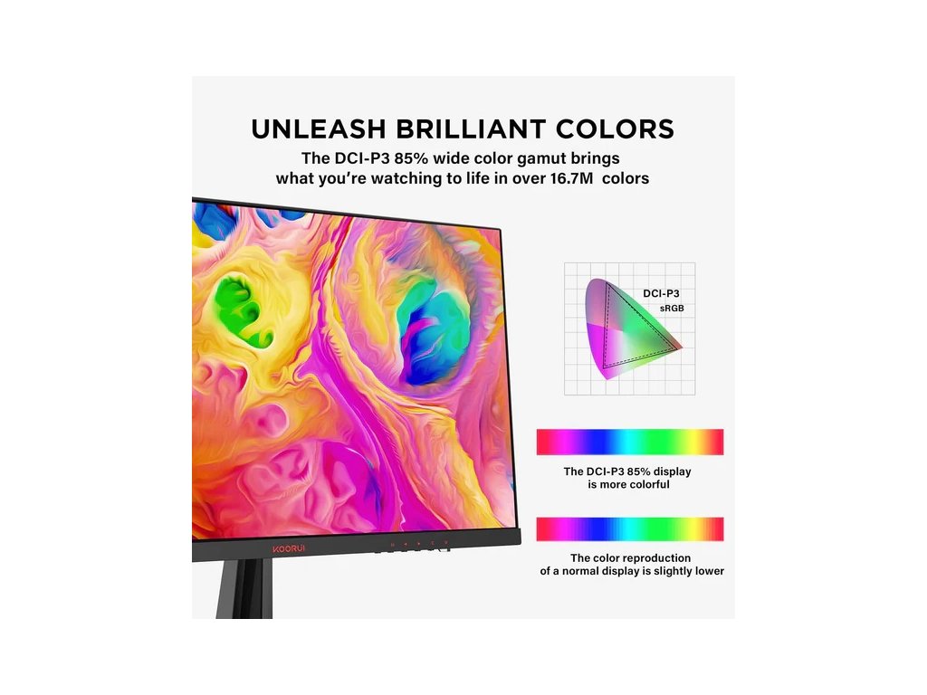 Monitor Koorui je ideální pro hraní her, protože kombinuje pokročilou obnovovací frekvenci 165 Hz s nejmodernější technologií Adaptive Sync. Díky tomu poskytuje výjimečně plynulý a harmonický zážitek během herních seancí. Herní režim umožňuje hráčům vidět nejjemnější detaily ve tmě, což jim dává velkou výhodu.