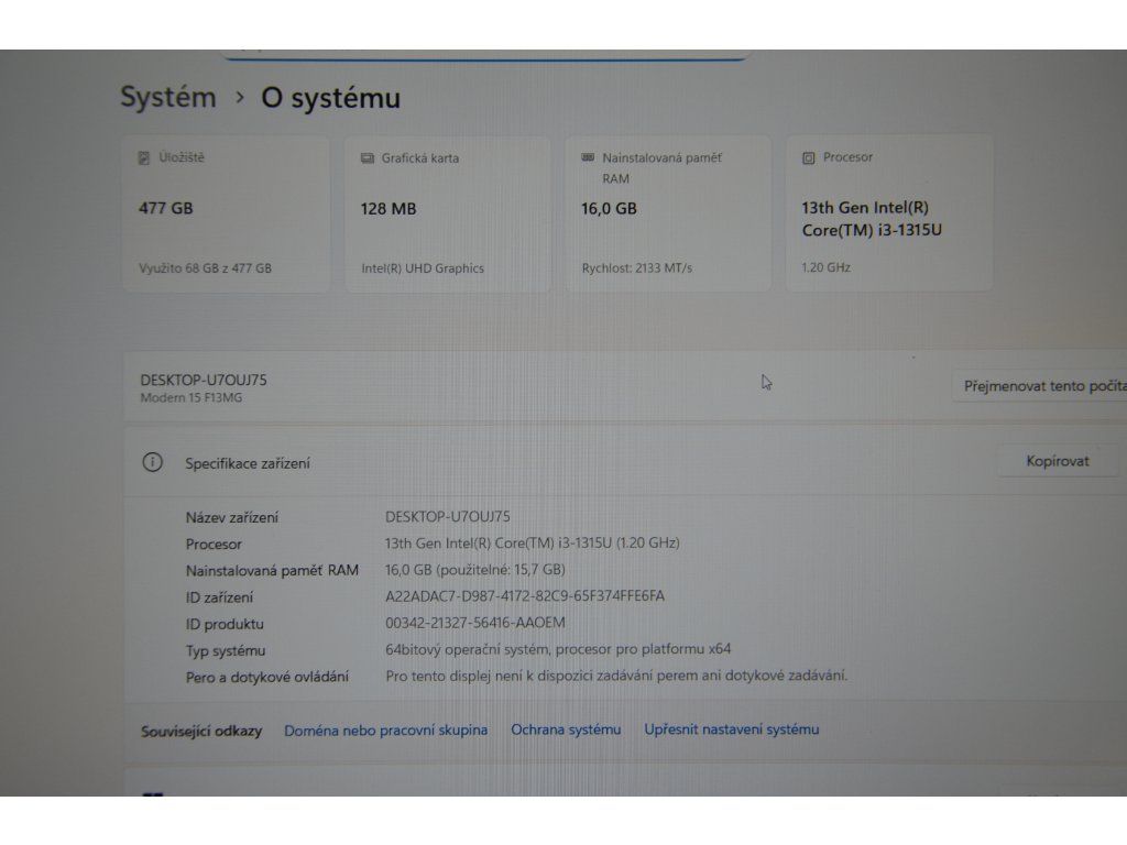 - procesor: Intel(R) Core(TM) i3-1315U