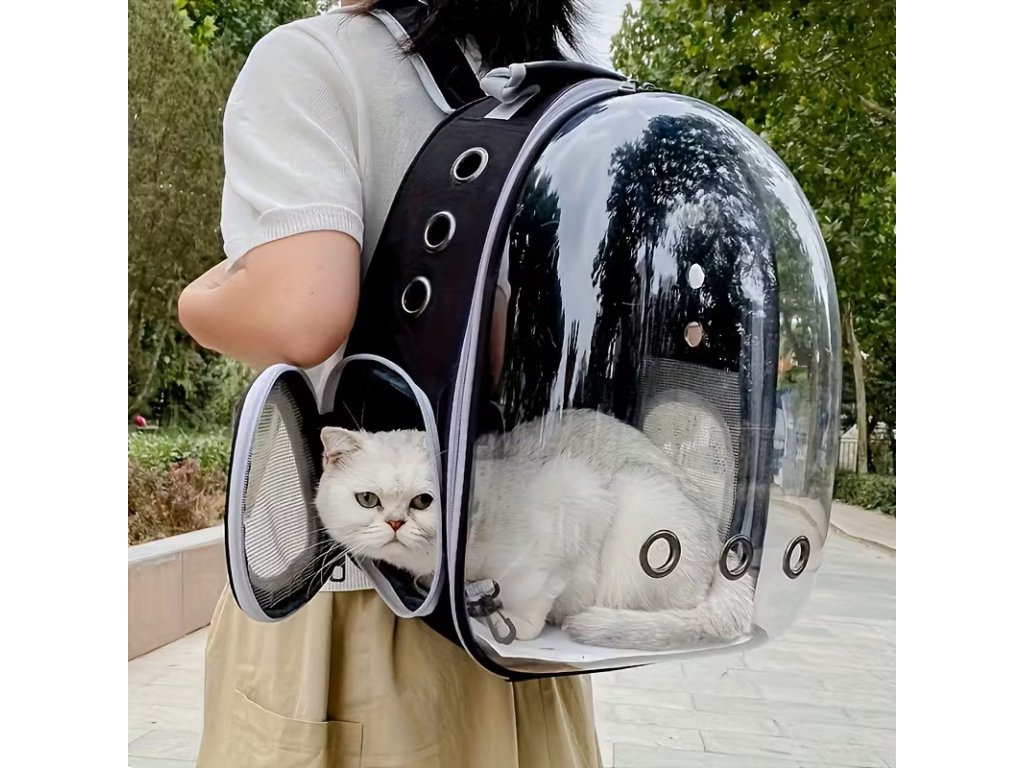 Prodám nový průhledný batohový přepravník pro kočky, případně malé psy. Lze použít jako letecký přepravník s ventilačním systémem, polstrovaným zádovým panelem a zipovým zámkem.